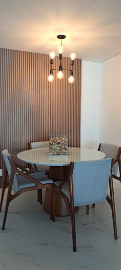 Neste lar para uma família de quatro pessoas, a harmonia entre tons de madeira, cinzas e brancos cria uma atmosfera acolhedora e contemporânea. Nosso foco foi otimizar cada espaço, priorizando as áreas de convivência, como a varanda e sala de estar, onde memórias preciosas serão criadas.